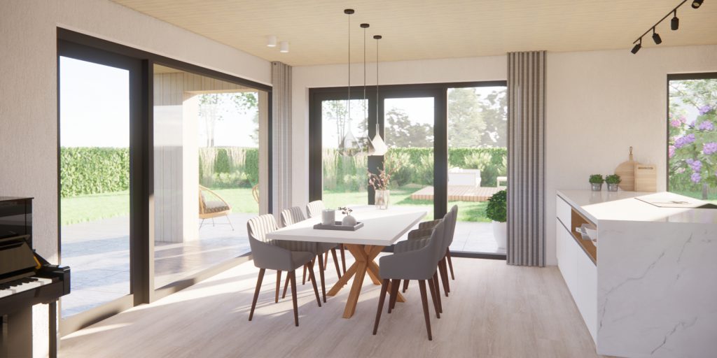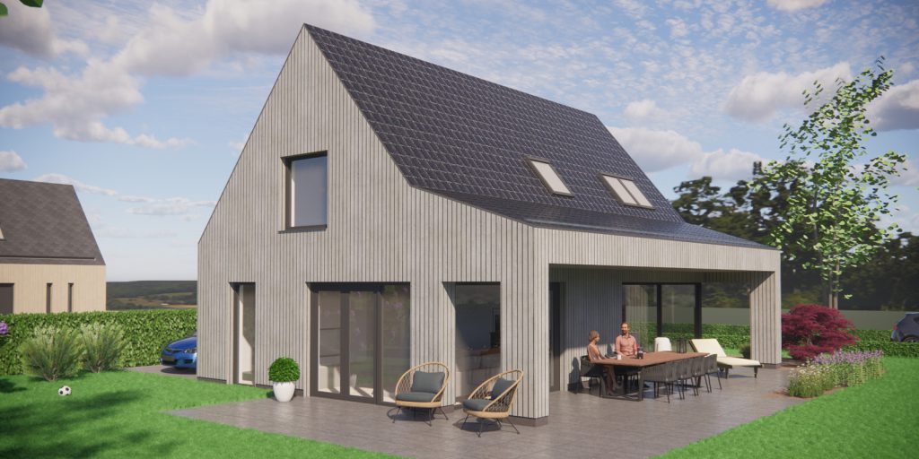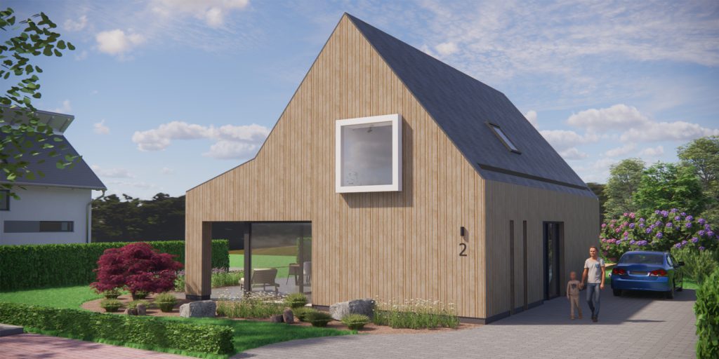 Deze vrijstaande nieuwbouwwoning is een schetsontwerp voor Hoomz en is verkrijgbaar in verschillende gevels en plattegrondindelingen. Het is een huis van houtskeletbouw waar naar wens volledig ecologische materialen toegepast kunnen worden.